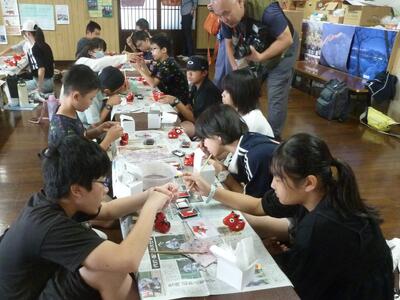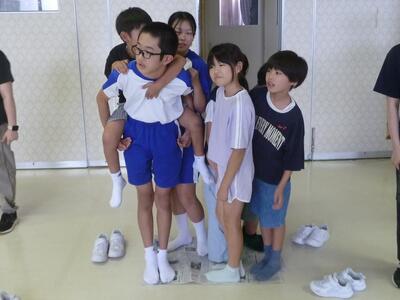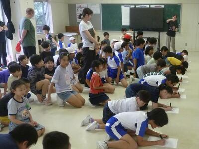 内容は、協力して校長先生の似顔絵を描く「お絵描きリレー」と、新聞紙の上に全員で乗る「新聞じゃんけん」です。それぞれの班が仲良く楽しい時間を過ごしました。