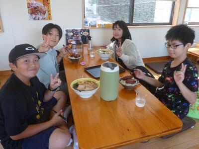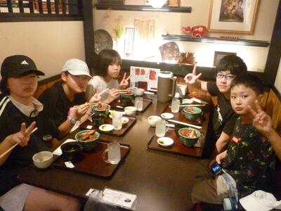 ホテルに着く頃には暗くなっていました。子どもたちは夕食も食欲旺盛!
