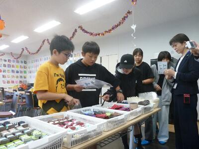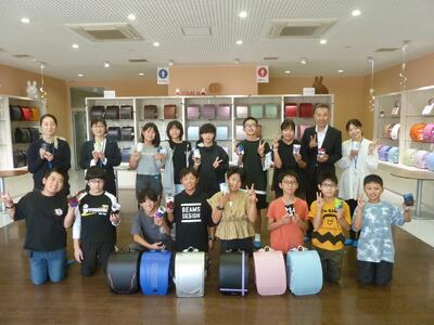 一通り作業工程を見せてもらった後、ランドセルの材料を使ってペン立て作りをしました。一人一人好きな色を選べました。