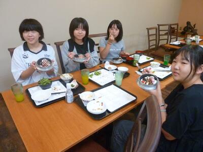 次にいよいよ班別研修です。飯盛山で解散後、各班の計画にそって行動しました。それぞれ赤べこの絵付けや博物館等の施設に行ったようです。食事も自分たちで探した場所で食べました。