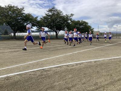 10月8日(水)に持久走記録会を実施しました。これまで体育の授業の他、登校後や休み時間に練習を頑張ってきました。他の学年のみんなと、たくさんの保護者の皆様の声援を受けて、自分の力を出し切る姿には感動しました!今年度は3年女子と6年女子で新記録が出ました。