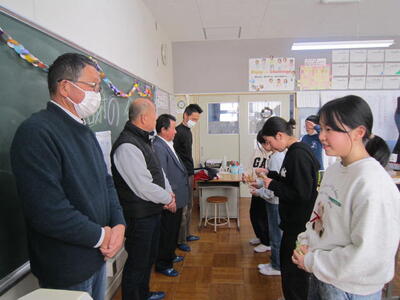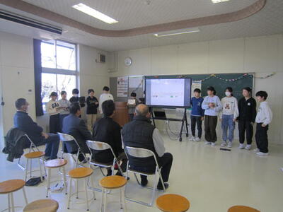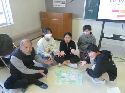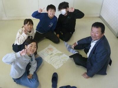 12月11日に、5年生が総合的な学習の時間でお世話になった米の先生と、大黒舞を教えてくださった先生方をお招きし、感謝の会を行いました。米について調べたことをプレゼンテーションしたり、大黒舞の発表動画を見たりしたあと、準備したクイズやゲームを行いました。そのあと、まるくなって給食を一緒に食べて交流し、最後に、手縫いの小物をプレゼントしました。