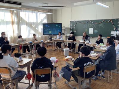 12月10日に、今年度第2回の学校運営協議会を開催しました。今回は授業通覧で学校の様子を見ていただいた後、11月に実施した学校評価アンケートの結果をもとに協議を行いました。