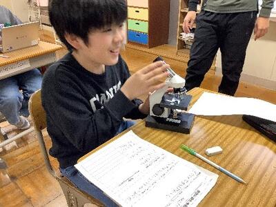 テーマは「光」です。理科室の暗幕を閉め、「光で光る」「化学反応で光る」といった実験をしたり、温度による化学反応の進み方の違いと発光時間・発光量を関連付けて考えたりしました。身近なものに隠された光に関する秘密に驚くことがたくさんあり、科学への興味が高まりました。