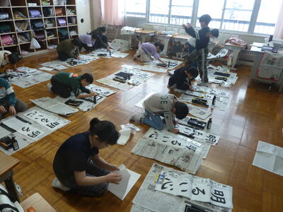 始業式の後、全校で書初めを行い心を整えました。